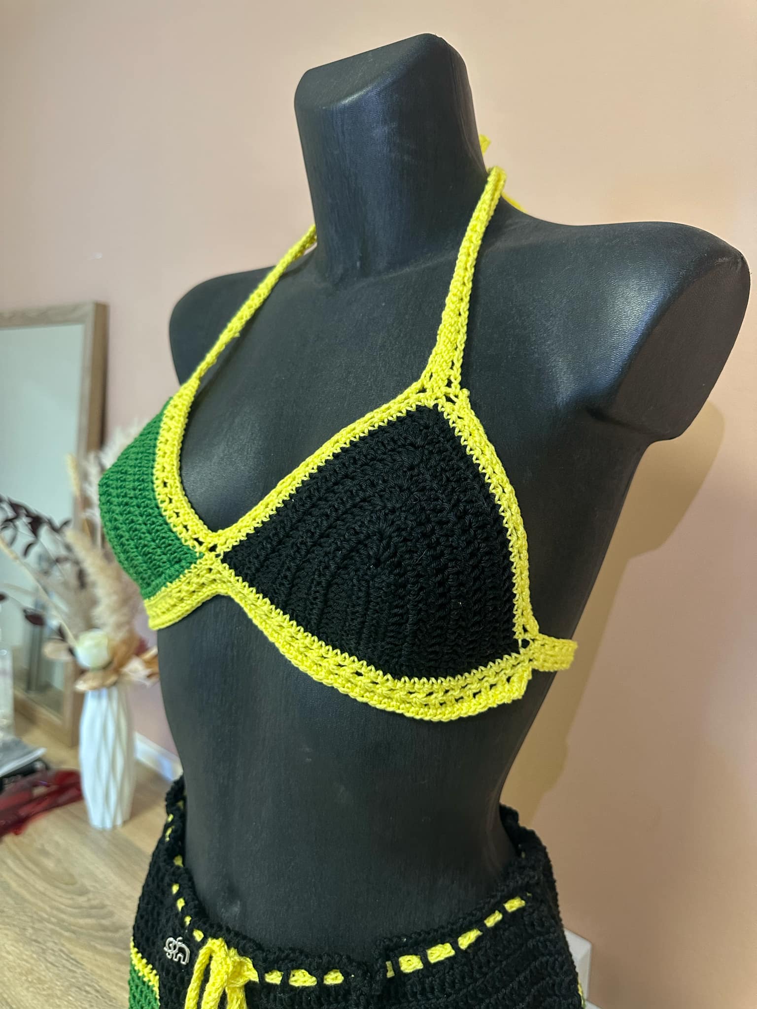 - Fait main : Chaque maillot est crocheté à la main avec soin, garantissant un produit unique.